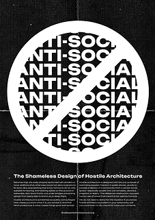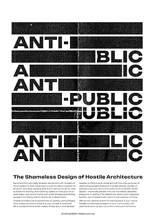 Anti-Hostile is a typographic activist campaign that raises awareness of hostile architecture. Hostile architecture targets homeless, disabled and elderly people—it is park benches with center dividers that prevent laying down, leaning benches only suitable for the able-bodied, and “anti-homeless spikes” that prevent people from sleeping on sidewalks.